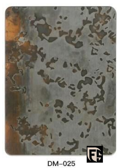 הטקסטורה אינה מודפסת – היא תוצאה של תגובה כימית אמיתית על מתכת אמיתית, מה שמבטיח מראה אותנטי, בלתי שחיק וחד-פעמי לכל לוח.